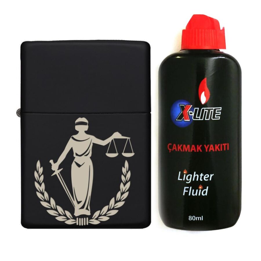 Atomic Benzinli Çakmak Benzin Seti Siyah Adalet Tanrıçası Themis