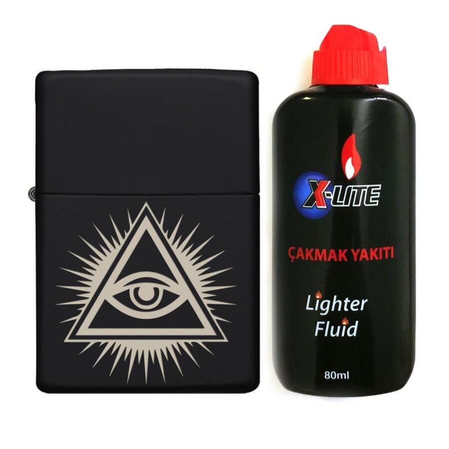 Atomic Benzinli Çakmak Benzin Seti Siyah Herşeyi Gören Göz