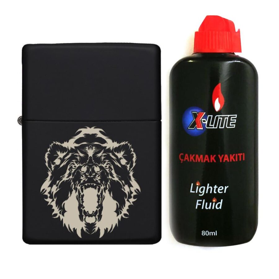 Atomic Benzinli Çakmak Benzin Seti Siyah Vahşi Ayı