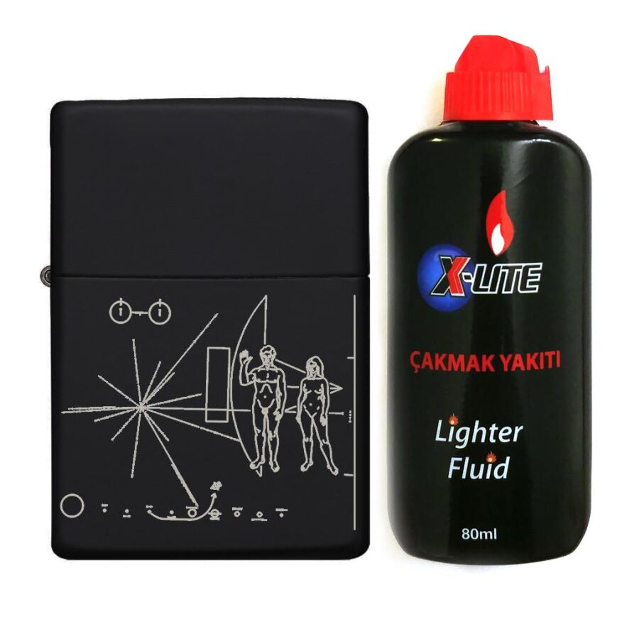 Atomic Benzinli Çakmak Benzin Seti Siyah Voyager1 Evrene Mesaj