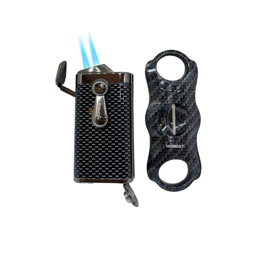 Honest Jet Alev Puro Çakmağı ve V Puro Kesici Seti Siyah