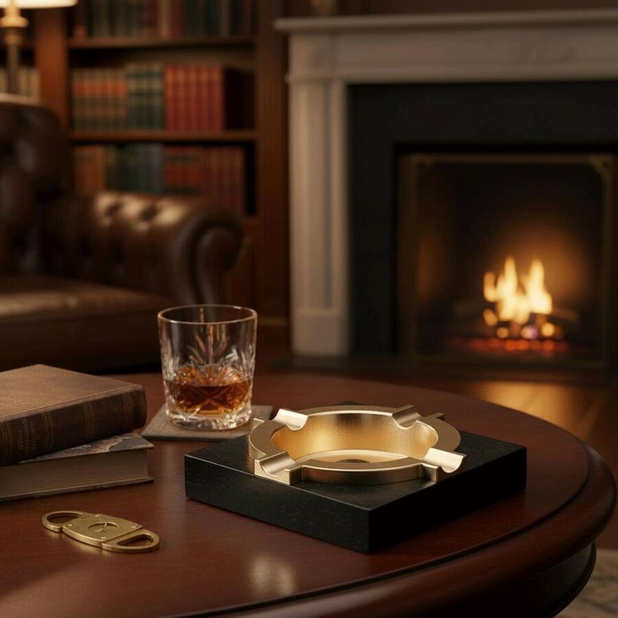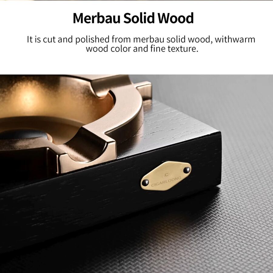 Cigarloong Ahşap Kare Puro Küllüğü Siyah Gold 4lü