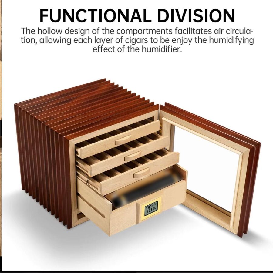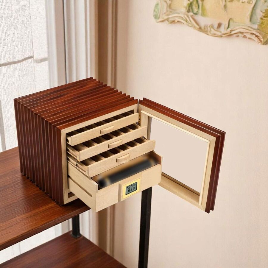 Cigarloong Camlı 3 Çekmeceli Puro Kutusu Ceviz 60's