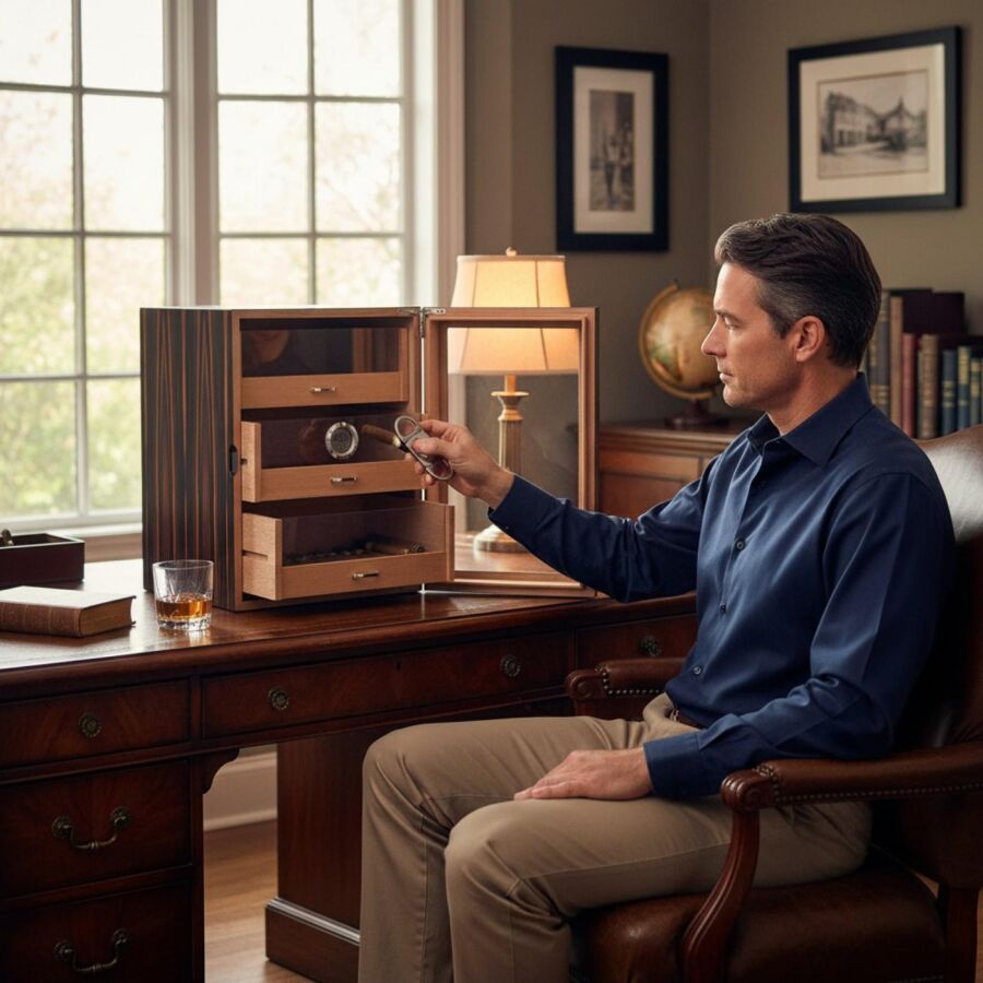 Kapağıda Camlı dolap şeklinde puro sergilemeye uygundur..