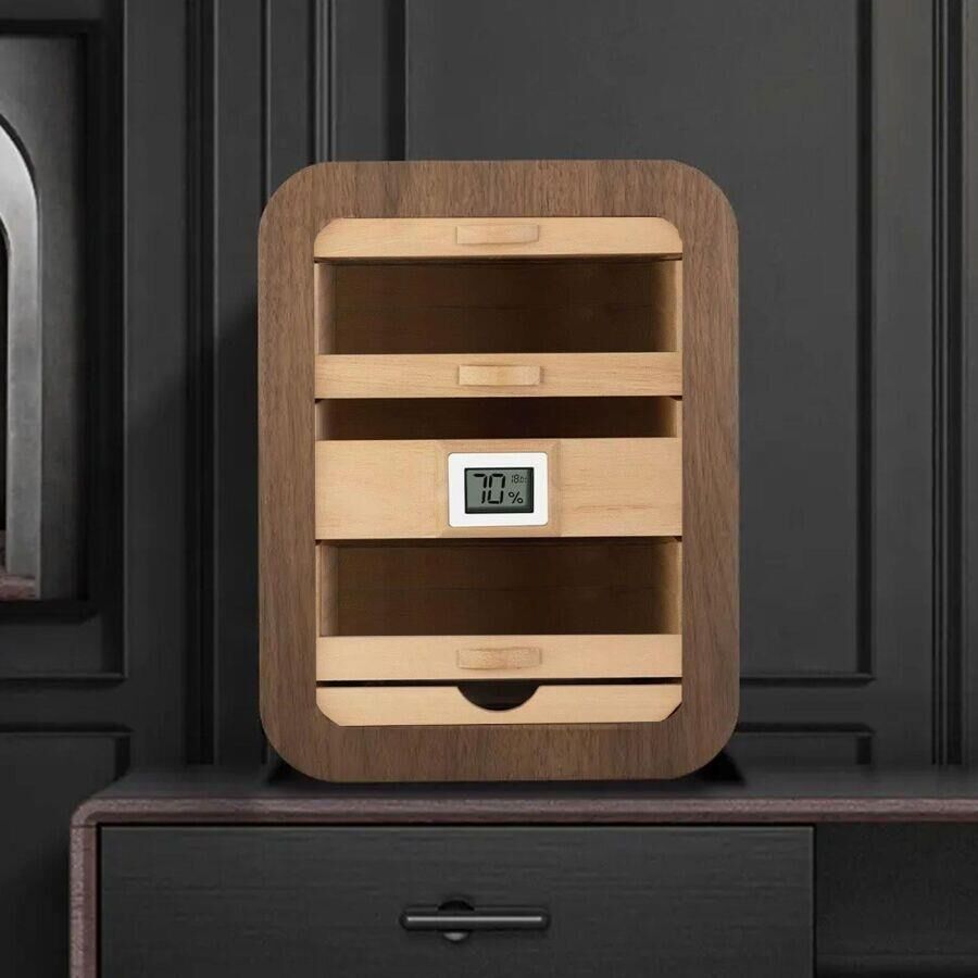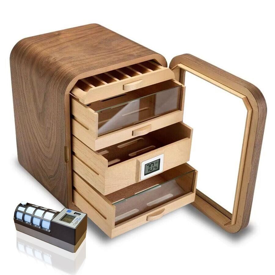 Cigarloong Camlı 5 Çekmeceli Puro Kutusu Humidor Ceviz 80's CigarSpa Elektronik Nemlendirme