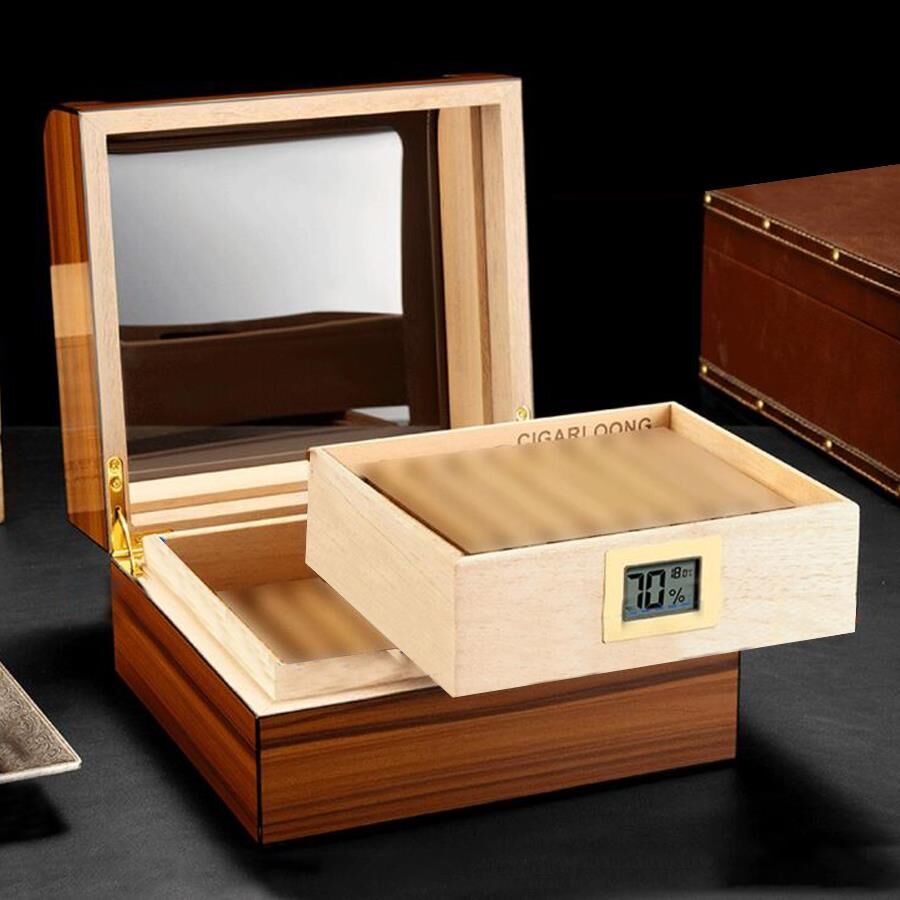 Cigarloong Camlı Puro Kutusu Humidor Ceviz 60's