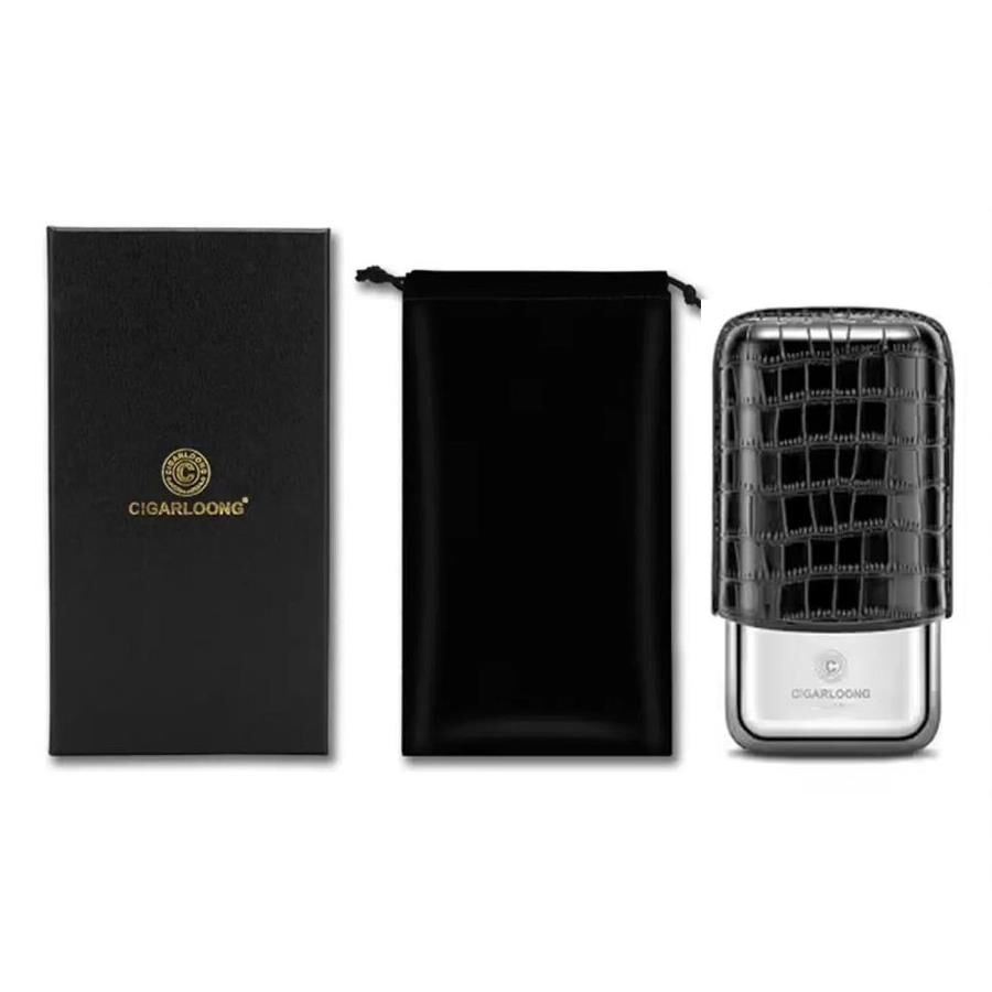 CigarLoong Metal Deri Puro Kılıfı 3lü Croco Siyah 60Ring