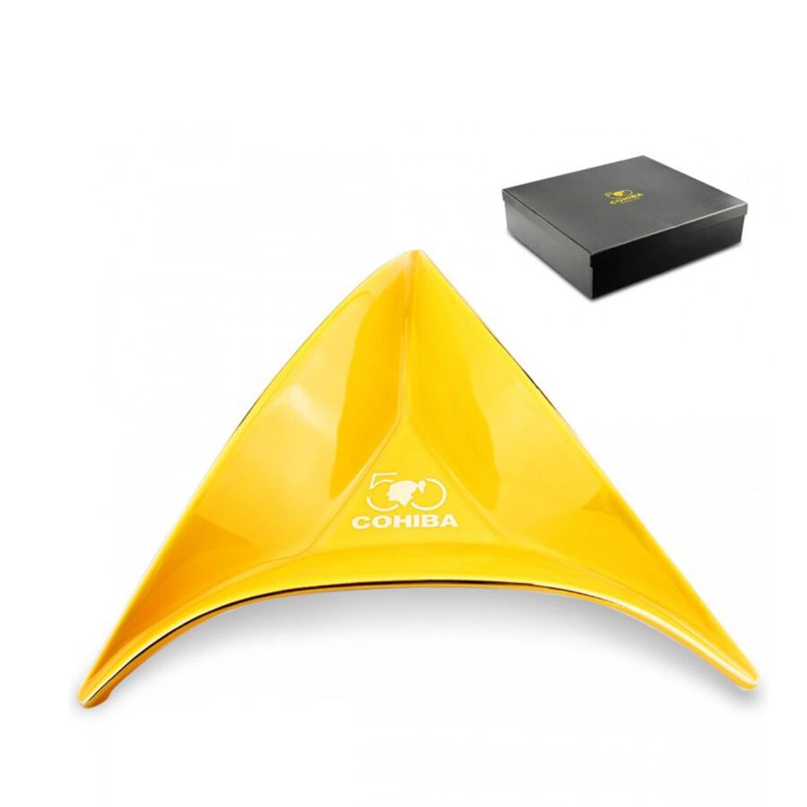 Cohiba 50.Yıl Üçgen Lüks Seramik Puro Küllüğü Sarı 3lü