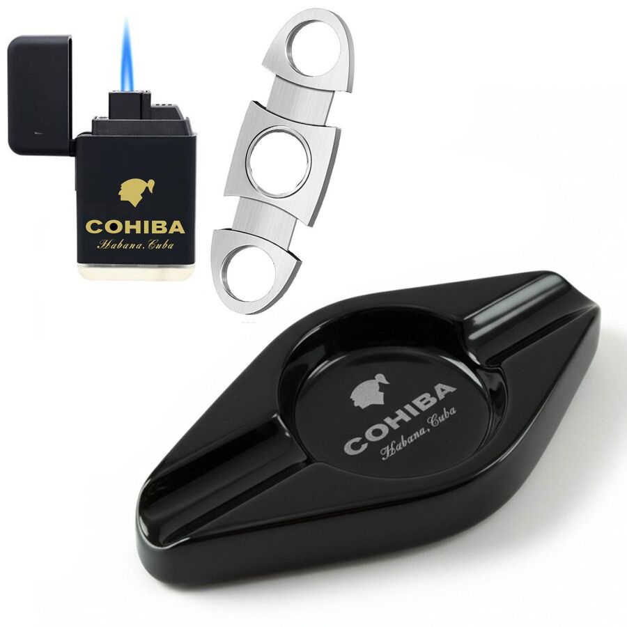 Cohiba Wide Küllük Çakmak ve Metal Kesici Puro Aksesuar Seti