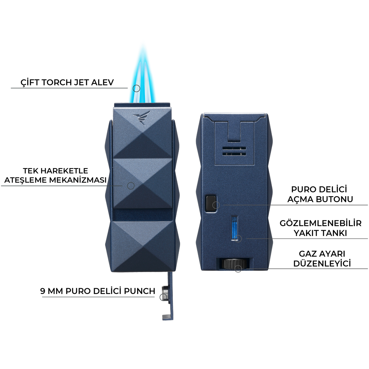 Colibri Quasar Hand 2 Alev Delicili Puro Çakmak Gunmetal LI7503
