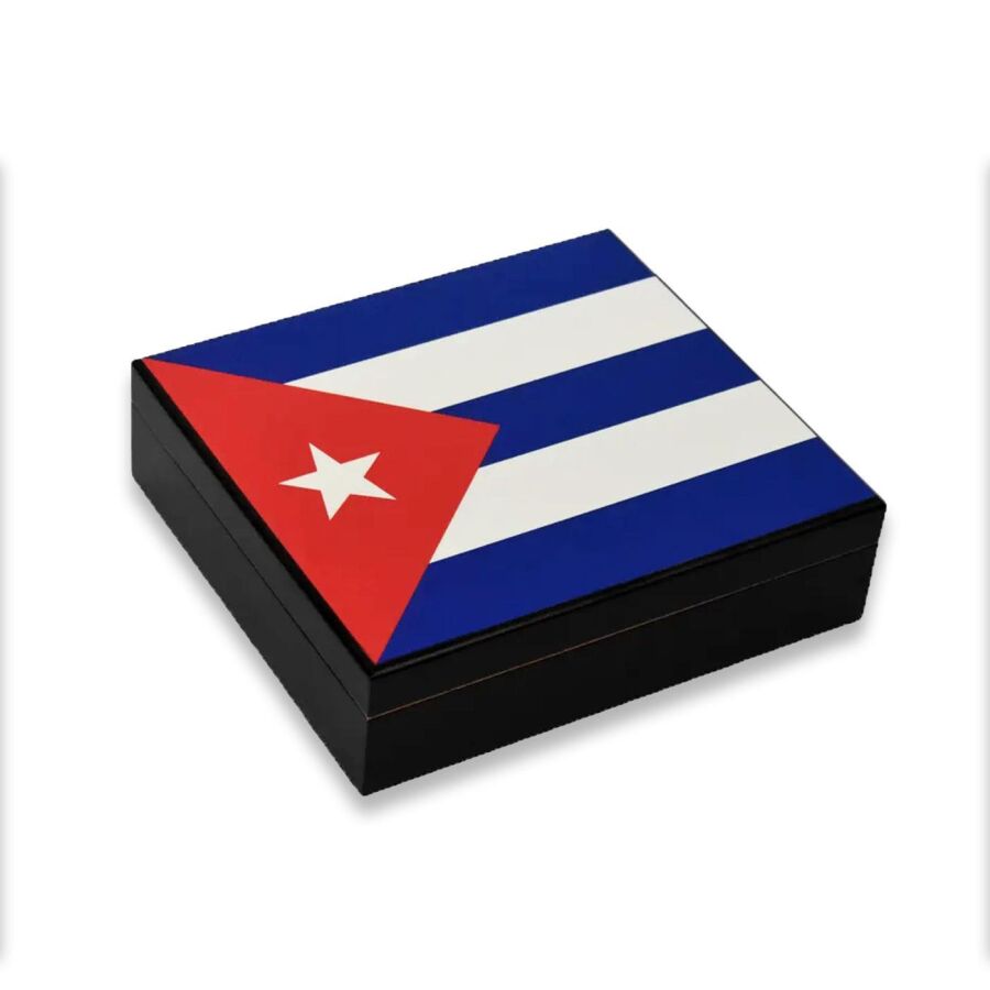 Cuban Flag Desen Puro Kutusu Humidor İçi Magnetli Siyah 20s