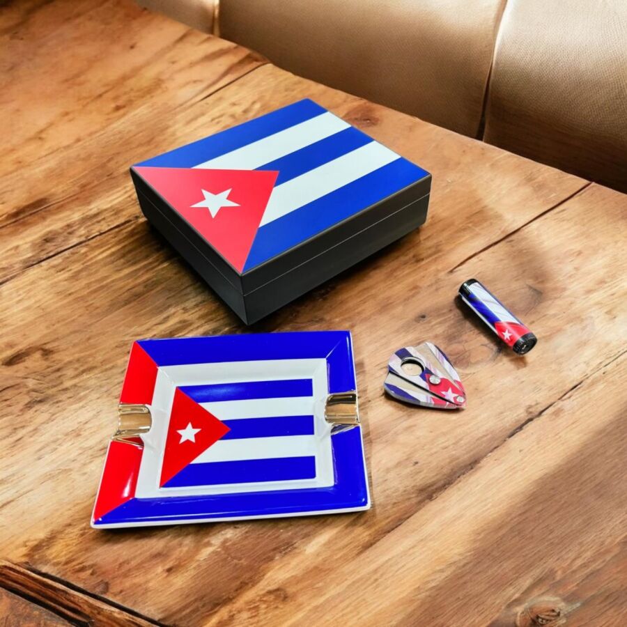 Küba bayrağının ruhunu yansıtan bu set ile, puro keyfinizi bir ritüele dönüştürün!