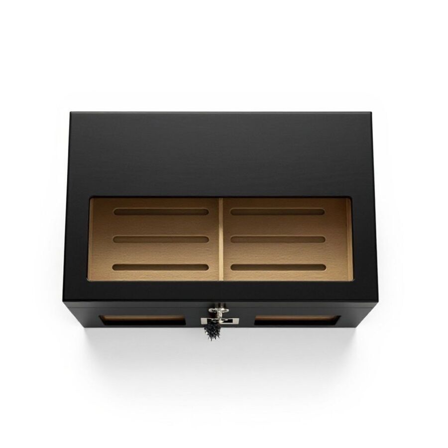Camlı Puro Kutusu Humidor – Mat Siyah 100’s