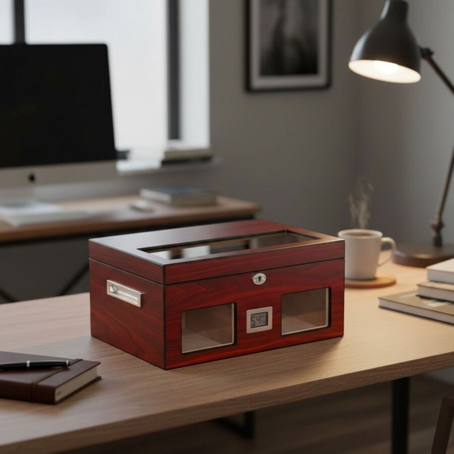Camlı Puro Kutusu Humidor – Mat Maun Vişne 100’s