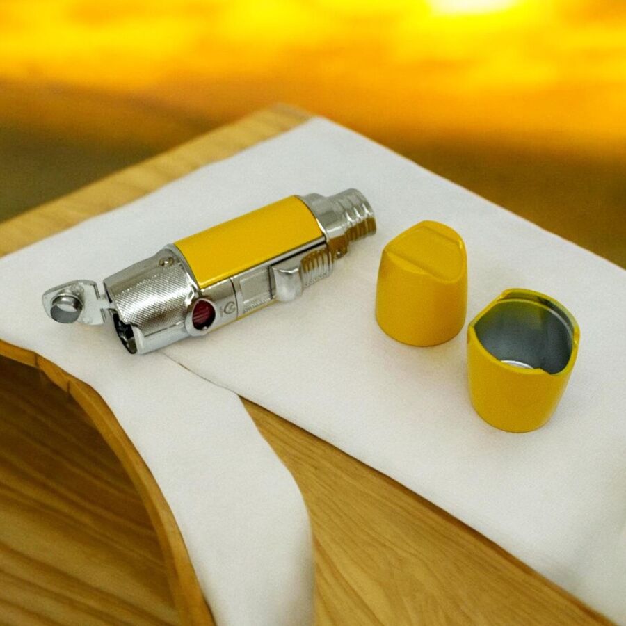 F60 3 Pürmüz Alev Delicili Sehpalı Puro Çakmağı Sarı
