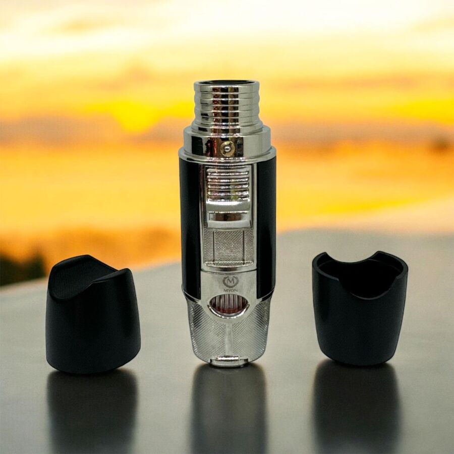 F60 3 Pürmüz Alev Delicili Sehpalı Puro Çakmağı Siyah