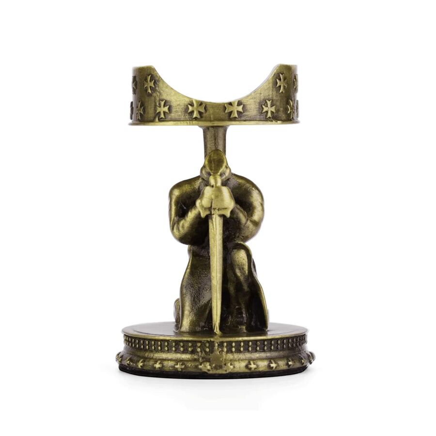 Pirinç malzemeden üretilmiş oturan şövalye figürü puro standı