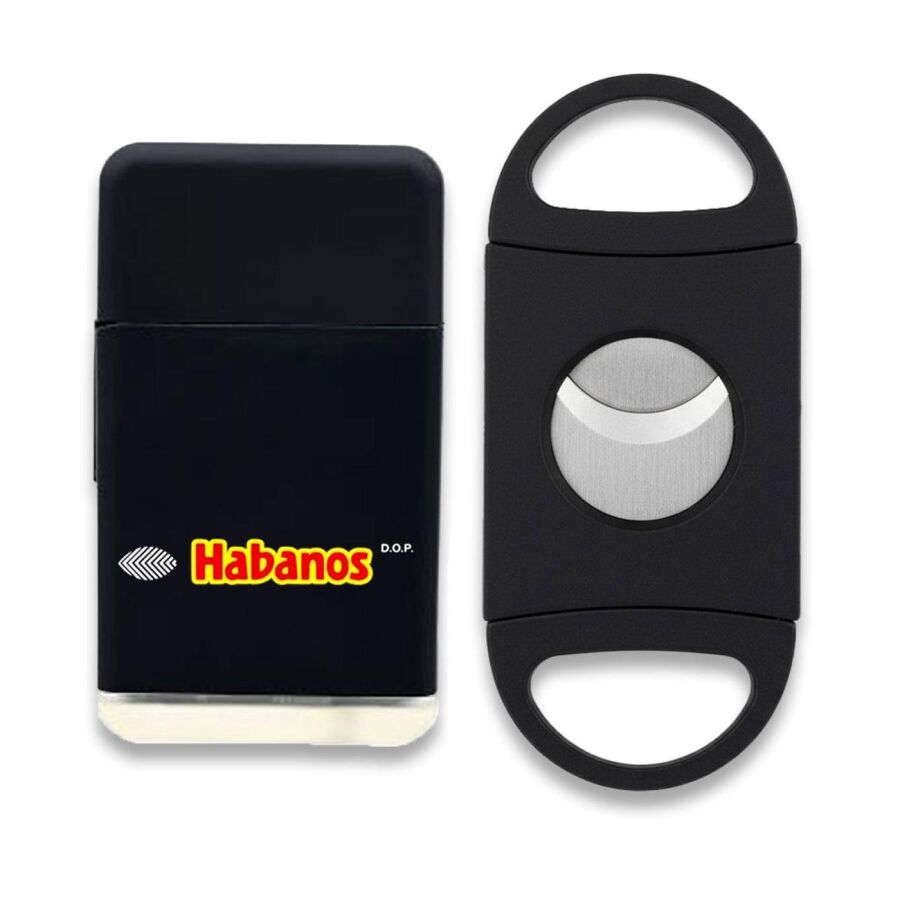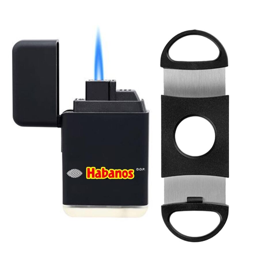 Habanos Plastik Jet Alev Puro Çakmağı Kesici Seti Siyah