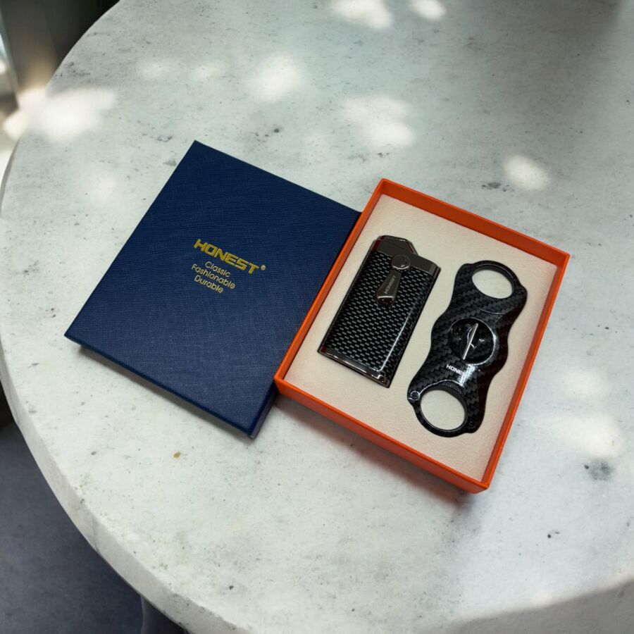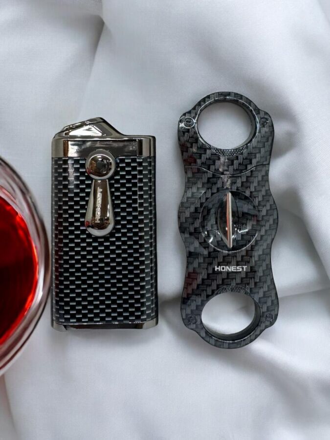 Honest 2 Jet Alev Puro Çakmağı ve V Puro Kesici Seti Karbon