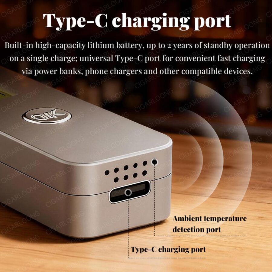 Humidimeter iğnesi özellliği sayesinde purolarınızın iç nemini ölçebilirsiniz.
