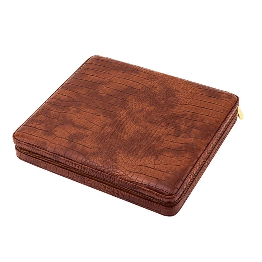 Lubinski Fermuarlı Deri Puro Taşıma Seyahat Çantası Croco 10lu