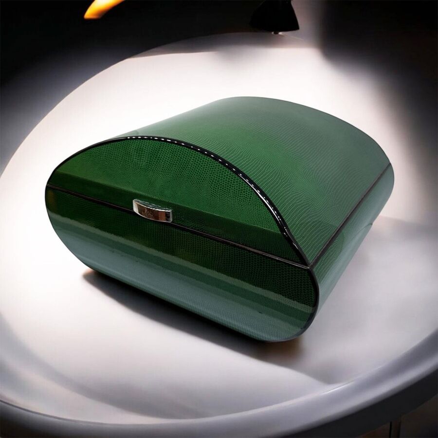 Lubinski İtaly Oval Humidor Puro Kutusu Lizard Yeşil 60's