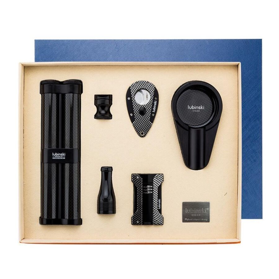 Lubinski Karbon Puro Seti Çakmak-Kesici-Küllük-Sehpa-Kılıf-Ağızlık