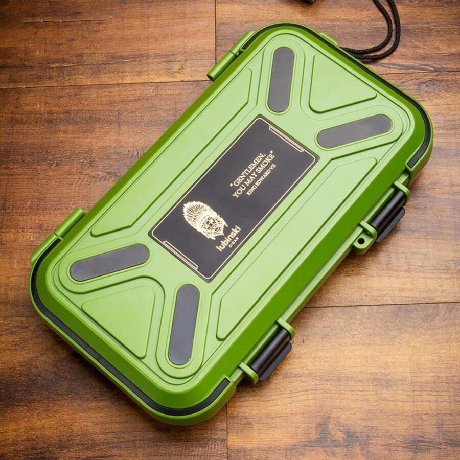 Güçlü plastik kasası hafif ve sağlam kullanım imkanı veren puro taşıma kutusu 5 puro kapasitelidir. Sünger iç zemin sayesinde purolarınız sallanmaz ve eşit nemlenir. Özel conta ile sızdırmazlığı sağlanmıştır.