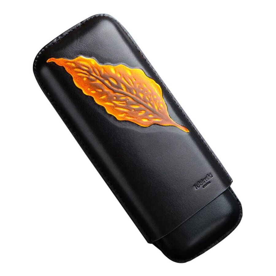 Siyah deri 2'li puro kılıfı, ön yüzündeki yaprak deseni ile çok şık...