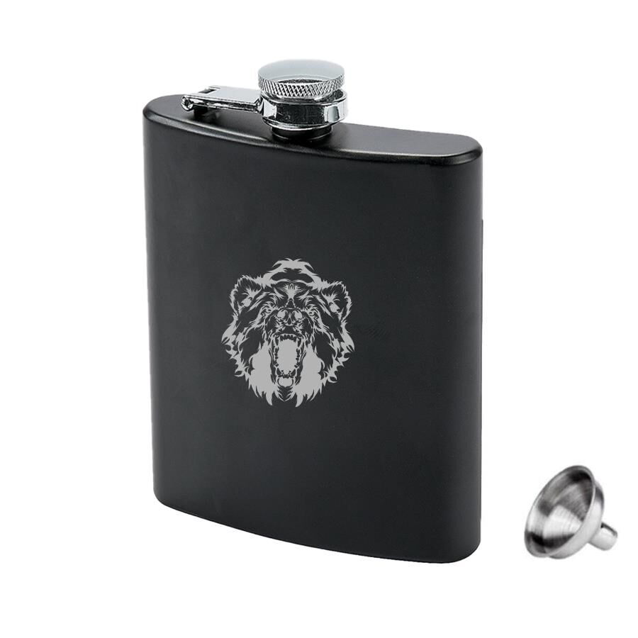 Vahşi Ayı Paslanmaz Çelik Cep İçki Matara Mat Siyah 8oz 240ml