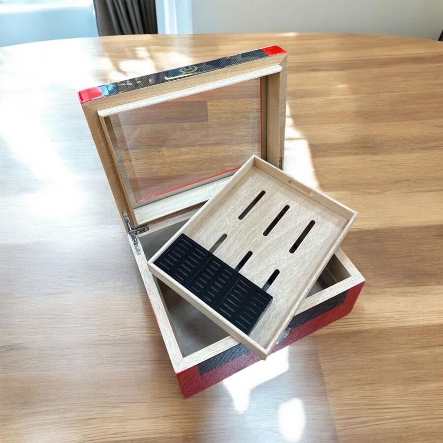 Myon Camlı Sedir Humidor Puro Kutusu Lake Kırmızı 60's