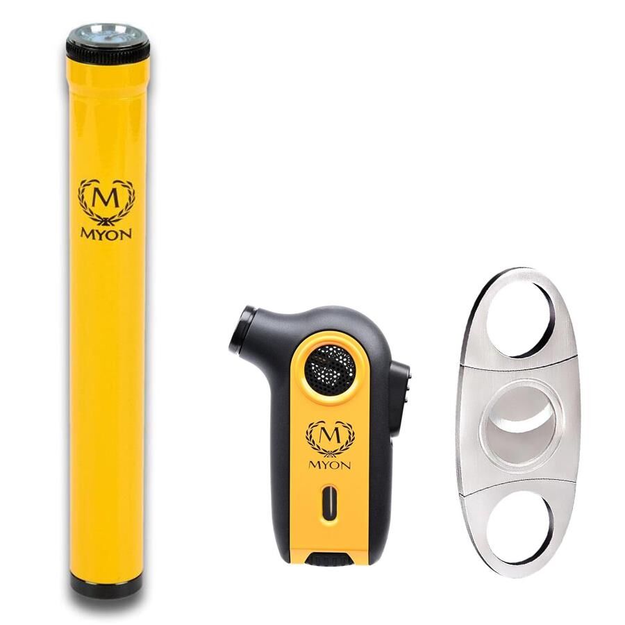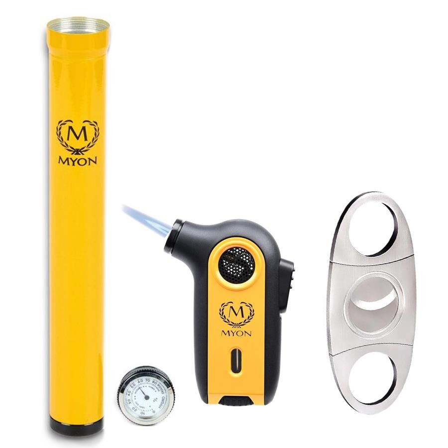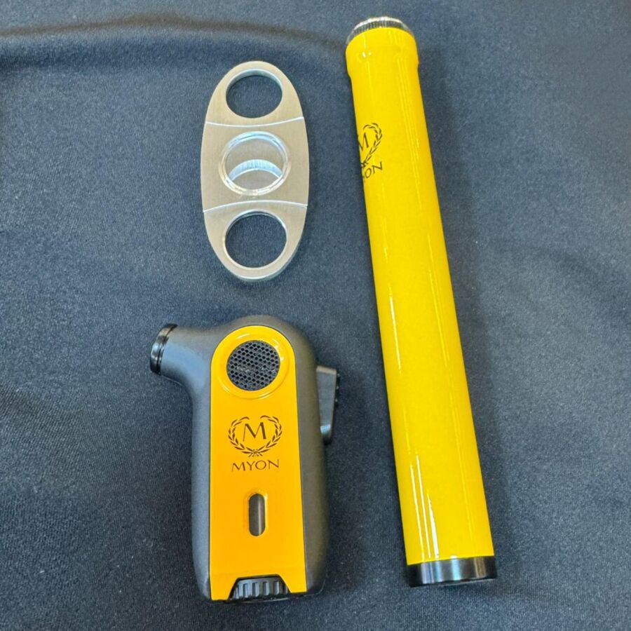 Myon Paris Royale Puro Aksesuar Seti; metal puro kılıfı, 1 pürmüz alev puro çakmağı ve kesiciden oluşmaktadır.