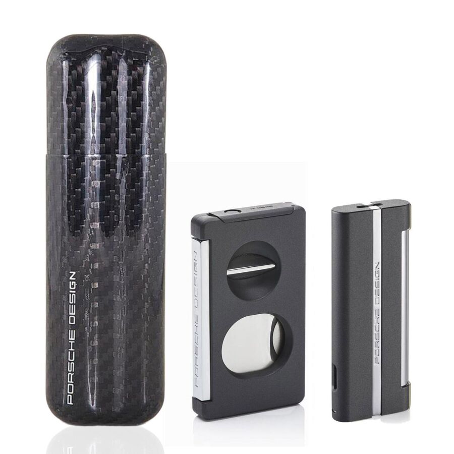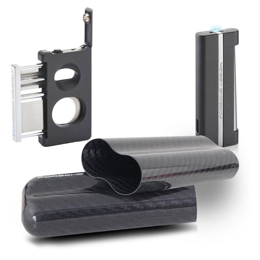 Porsche Design Karbon Fiber Puro Kılıfı 2li Double Kesici ve Jet Puro Çakmak Seti Grey P3626-3644-16116