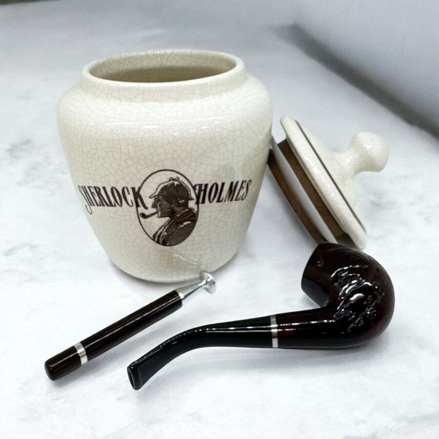Sherlock Holmes El Yapımı Seramik Pipo Tutun Kavanozu Bej Large