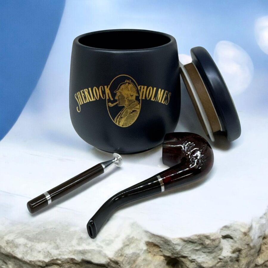 Sherlock Holmes El Yapımı Seramik Pipo Tutun Kavanozu Mavi