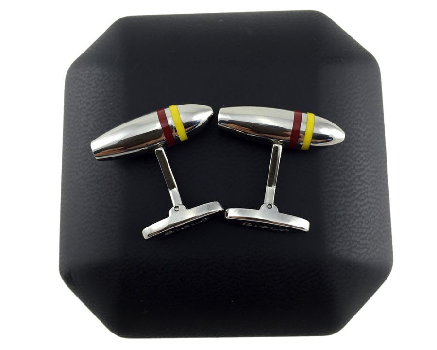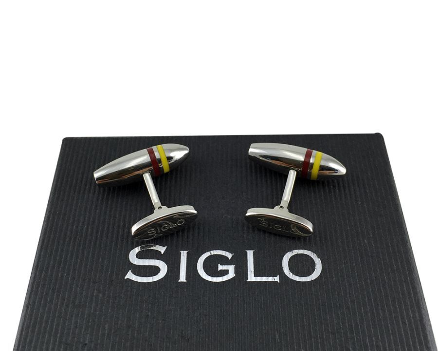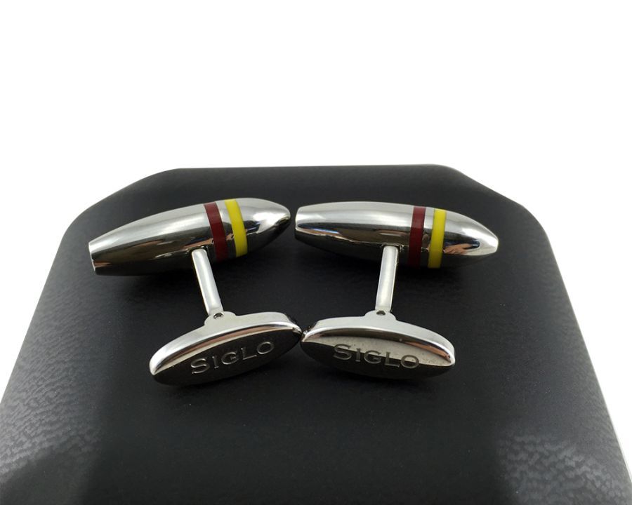 SİGLO Sarı Kırmızı Çizgili Model Kol Düğmesi