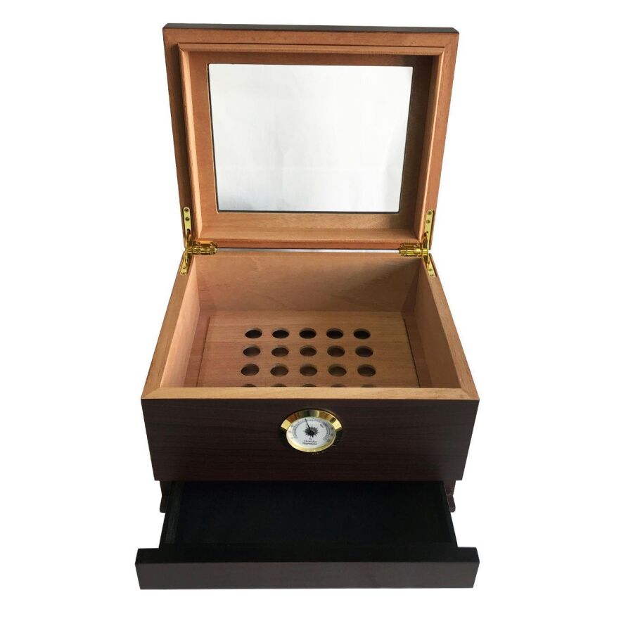 Sikarlan Cedar Camlı Çekmeceli Puro Kutusu Humidor Kahve 40s